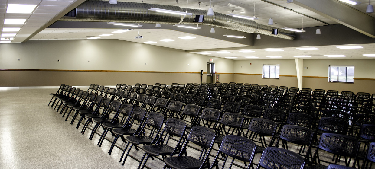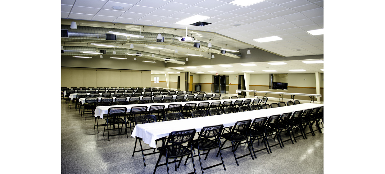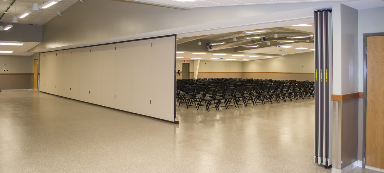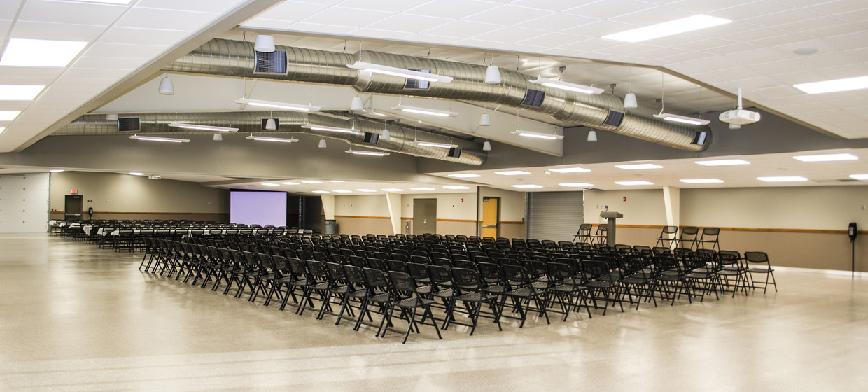 The new 8,590 square foot entry building features a hall showcasing a donated limestone carved plaque, a small flexible meeting space, a commercial kitchen, and three restrooms to accommodate the needs of the facility. Special access was designed to allow patrons on the fairgrounds to use the restrooms while the rest of the building remained secure. The existing 13,800 square foot building exhibit hall was reskinned with new metal siding, roofing, and liner panels. The design of the interior was opened visually by removing and raising the ACT ceiling. The central area of the space is opened further by exposing the existing structure. Other major improvements to the exhibit hall include a 63-foot partition door, epoxy flooring, and a wainscoting utilized in the new and existing building to tie the spaces together.