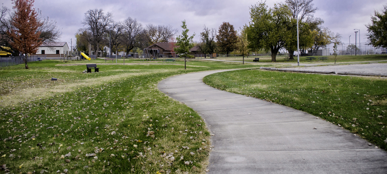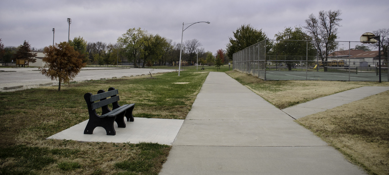 Completed in 2013, the Jones Park Memorial Trail circles Jones Park in the southeast corner of Lyndon, Kansas. The trail is one component of the City’s Hike/Bike Trail Master Plan, and connects to existing paths. Six feet wide and 3,487 feet long, the trail is accompanied by a 1,450-square yard gravel drive that provides ADA access to the southern portion of the trail.