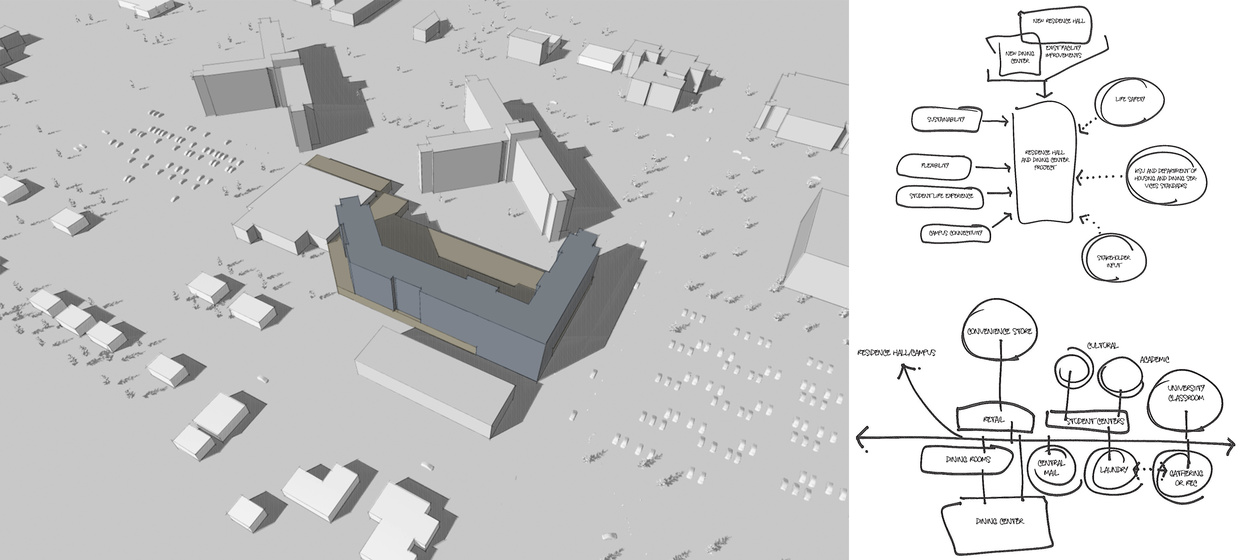 This programming and space needs assessment was the initial stage of Housing and Dining Services at Kansas State University responding to projected student growth and housing needs. BG Consultants was contracted to create a program that guided the development of designs for a new residence hall, dining center, and existing facility improvements for Goodnow Hall and Marlatt Hall. Together with the Housing and Dining Services Management Team and Campus Planning and Facilities Management, BG Consultants developed a program with written descriptions of key considerations, numeric and written space program, conceptual expansion diagrams, cost estimates, project schedule, proposed massing plan, facility design criteria, and supporting data.