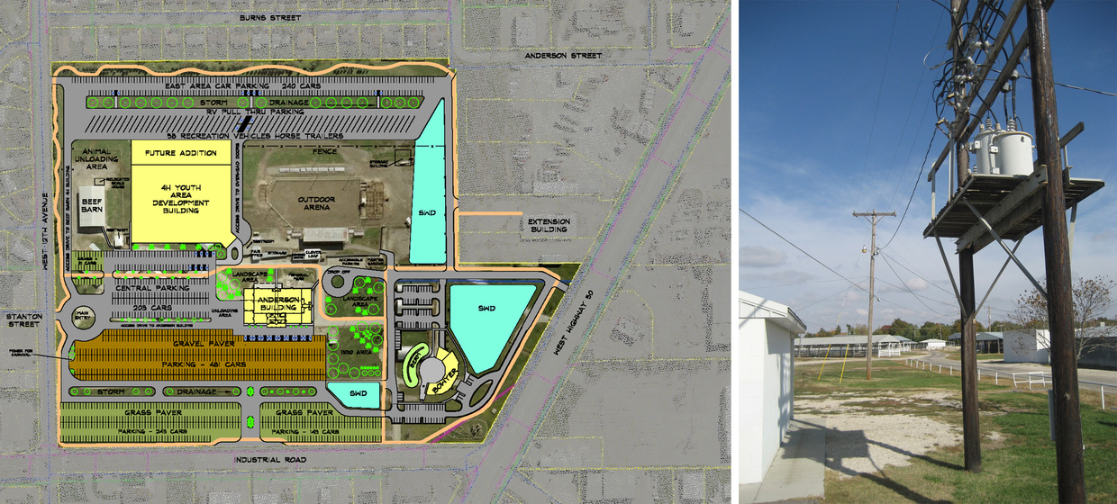 Two existing buildings, as well as a large 4-H Youth Area Development facility with an indoor arena, were studied for future impact on parking and utility requirements. Renovation and expansion of the Anderson Building, which was constructed in the 1960s and provides space for auctions and conventions, was one of the focal points of BG’s study. Renovations for the Anderson Building, also designed by BG, were recently completed.