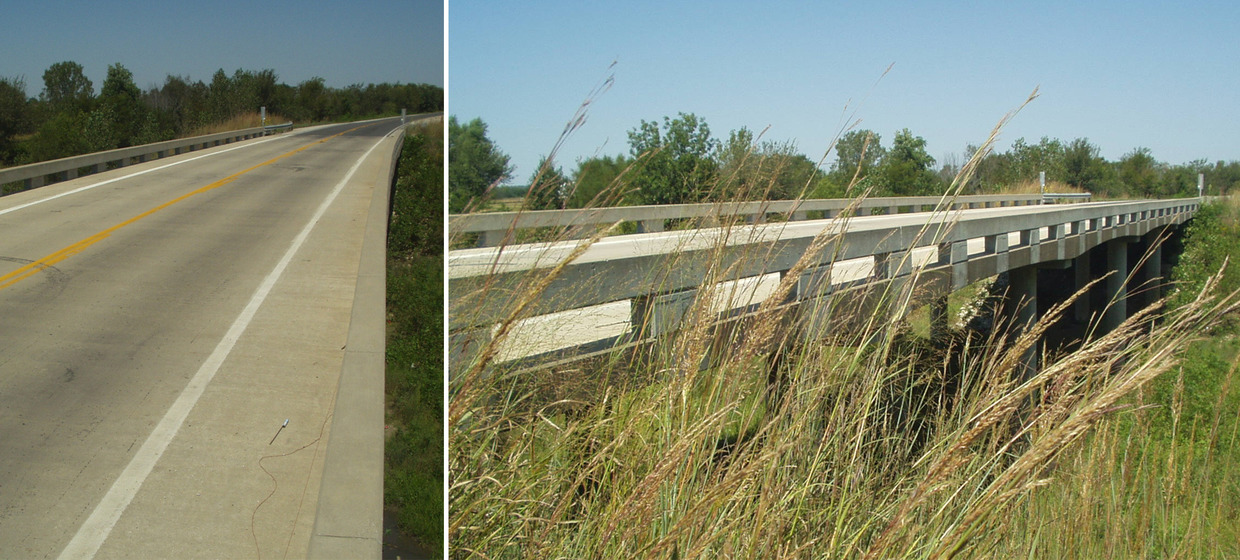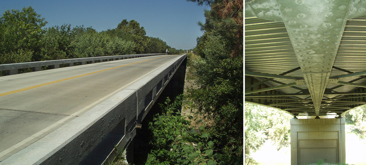 In 2005, the 60-year-old Plum Creek and Marais des Cygnes bridges north of Osawatomie were deemed to be structurally deficient and functionally obsolete. Although the inspection revealed major deck deficiencies, the bridges and their foundations were structurally sound. BG provided the engineering investigation and analysis services and determined that the most feasible strategy was to remove and replace the bridge deck while keeping the existing superstructure and substructure in service. This would add another 20- to 30-years of life to the bridge at 20 percent of the cost to replace the entire bridge. BG Consultants developed plans for the removal and replacement of the old concrete decks and ornamental steel bridge rails, while salvaging the original steel plate girders, steel beams, and Art Deco piers and abutments.
