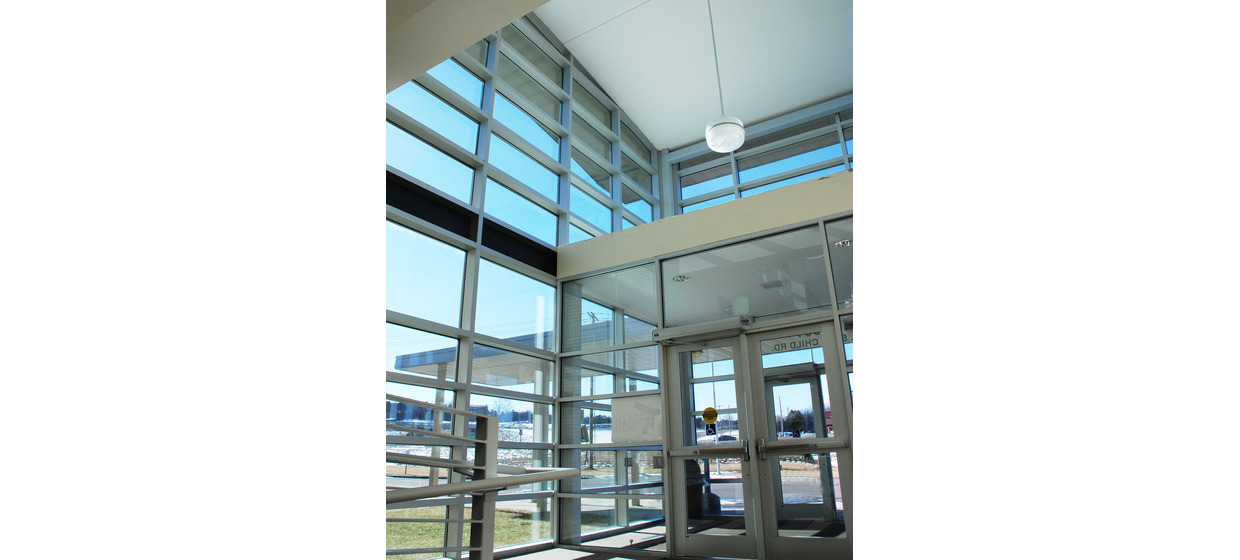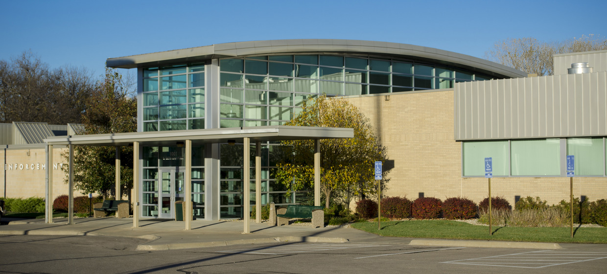 The Law Enforcement Center was designed to communicate the transparency of the law and importance of order. It features large expanses of glazing along a public entryway and a continuous ribbon of glass around the building. Themes of enclosure and firm justice, manifested by a masonry exterior, represent the iconic imagery of the jail building type.