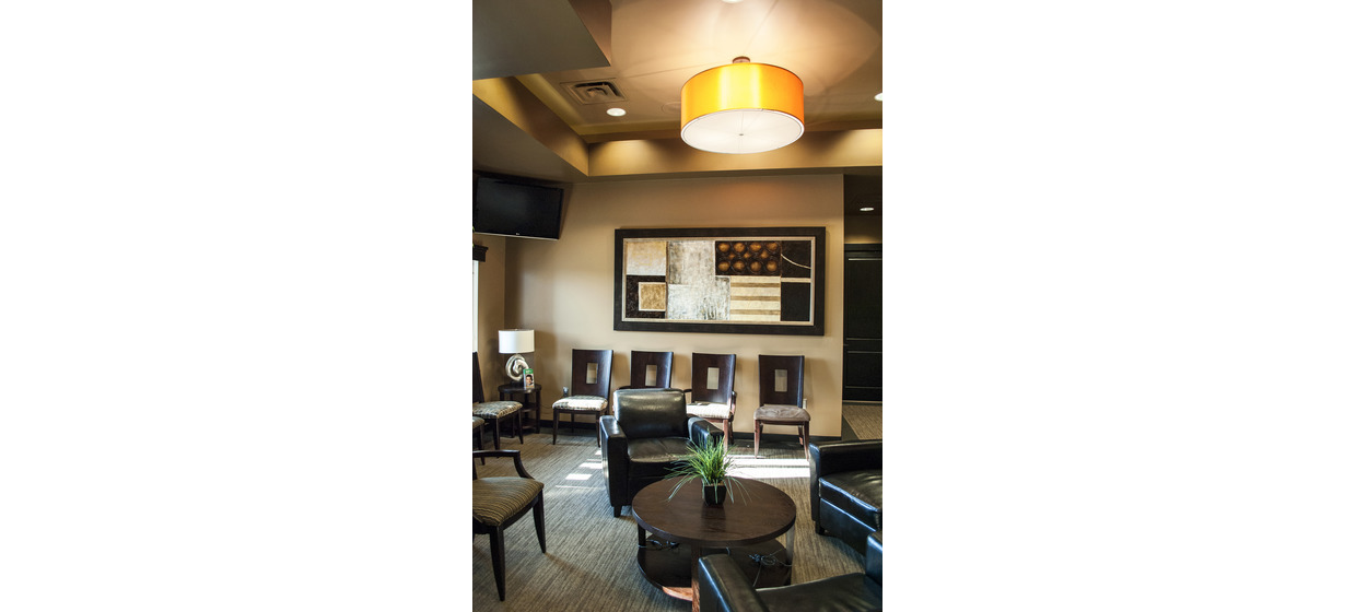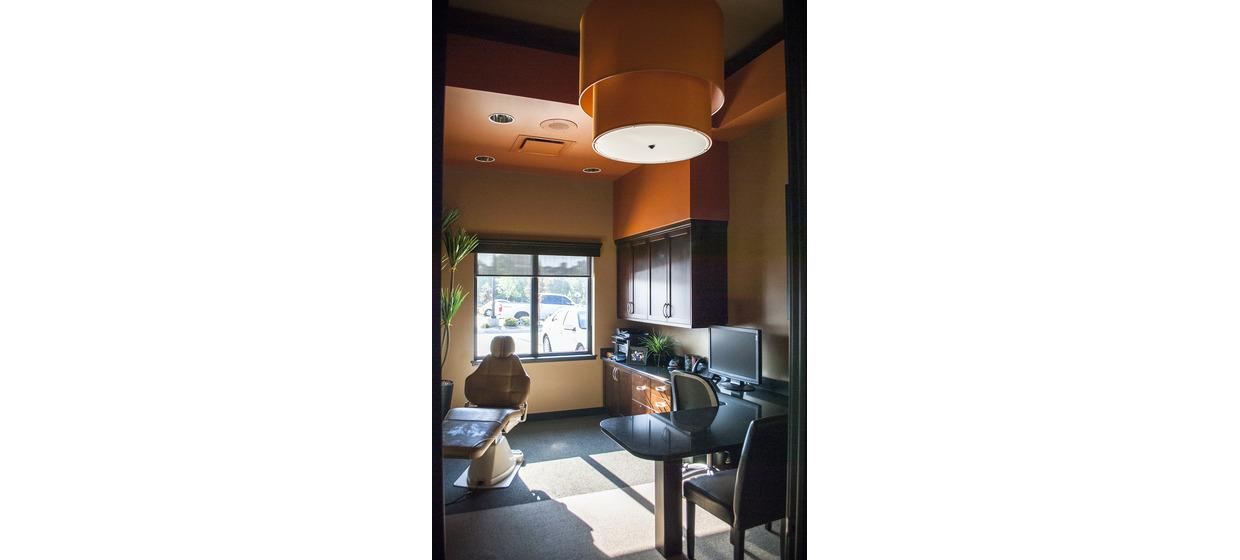 The floor plan was organized to provide comfortable waiting space with a central area dedicated to waiting children. Spatial flow supplemented the organization’s clinical and cultural practices, providing a workplace conducive to productivity and economy. The primary arrangement of circulation was based upon a linear arrangement. A unique feature incorporated in the orthodontics bay was natural lighting from floor to ceiling. It allows patients to watch pedestrians and traffic while in the orthodontics chairs and brings in ample daylight. The interaction of the interior and exterior allows the atmosphere to have a tranquil and sophisticated attitude, encouraging patients to relax and calm their nerves.