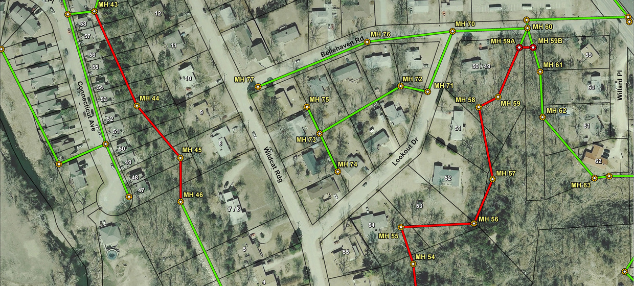 The 2013 portion of the project also included two areas of wastewater system improvements. The Old Claflin improvements required the replacement of 415 feet of eight-inch sanitary sewer lines and three manholes. The Wildcat Ridge area required the replacement of approximately 2,600 feet of sanitary sewer and 19 manholes. Both areas of the project solved the problem of excessive maintenance due to aging infrastructure.