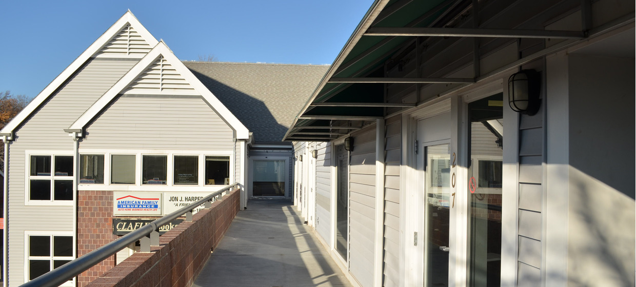 The project presented challenges from occupancy regulations to structural integrity. Within the walkways, structural support had completely deteriorated, and the weight distribution was carried on a non-bearing masonry wall. This caused major problems as cracks formed throughout the masonry, the concrete walkway collapsed, and one wall began pulling away from the structure. Site parking is vastly insufficient for the site, but due to its proximity to campus, most traffic to the businesses is pedestrian and current parking requirements could not be met. Code requirements would also restrict the types of occupants who could use the second level without significant additional construction costs and requiring a secondary exit at the basement level.